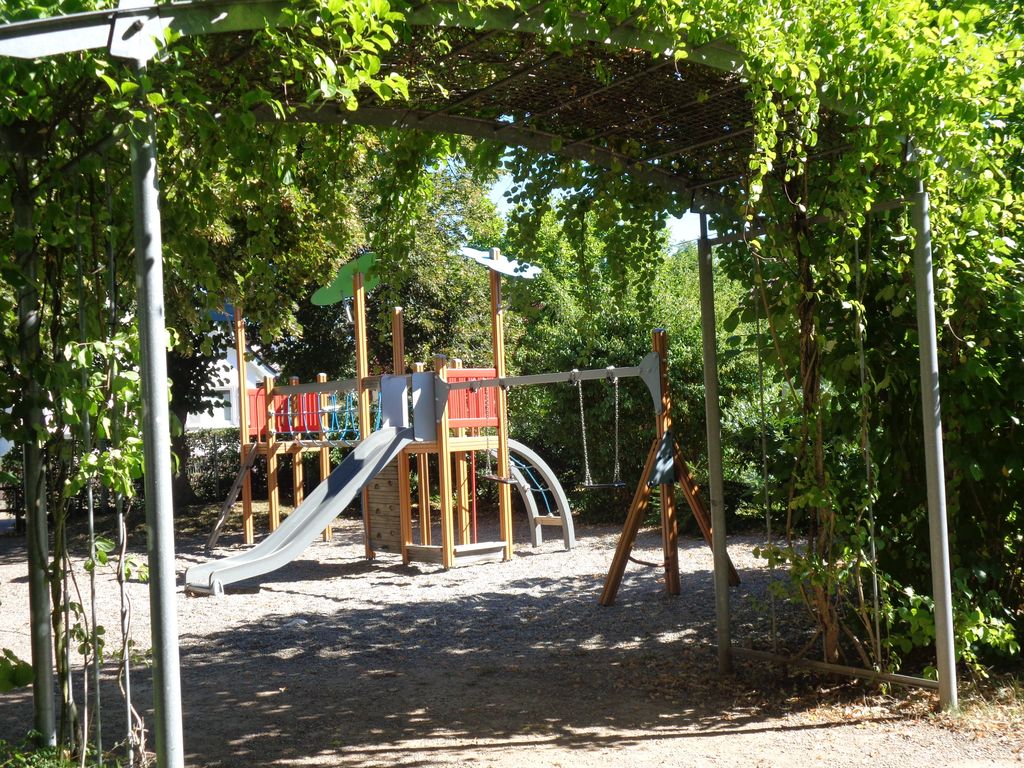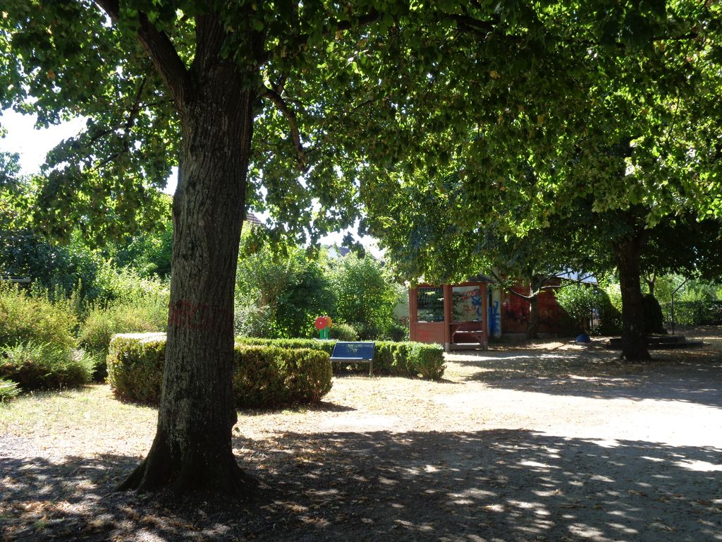Alter: 3 – 14 JahrenAusstattung: Sitzbänke, Pavillon Halbschatten, SonneSpielgeräte: Sandkasten, Wipptiere, Babyschaukel, Vogelnestschaukel, Seiltanz, Kombination- Spielanlage mit Rutsche, Tischtennisplatten, Korbballanlage