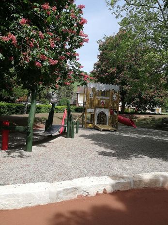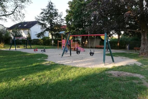 Alter: 3 – 14 JahrenAusstattung: Sitzbänke, Sonne, HalbschattenSpielgeräte: Sandkasten, Doppelschaukel, Kombinationsanlage Ritterburg, Hüpfdrache