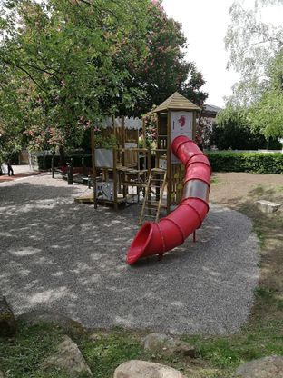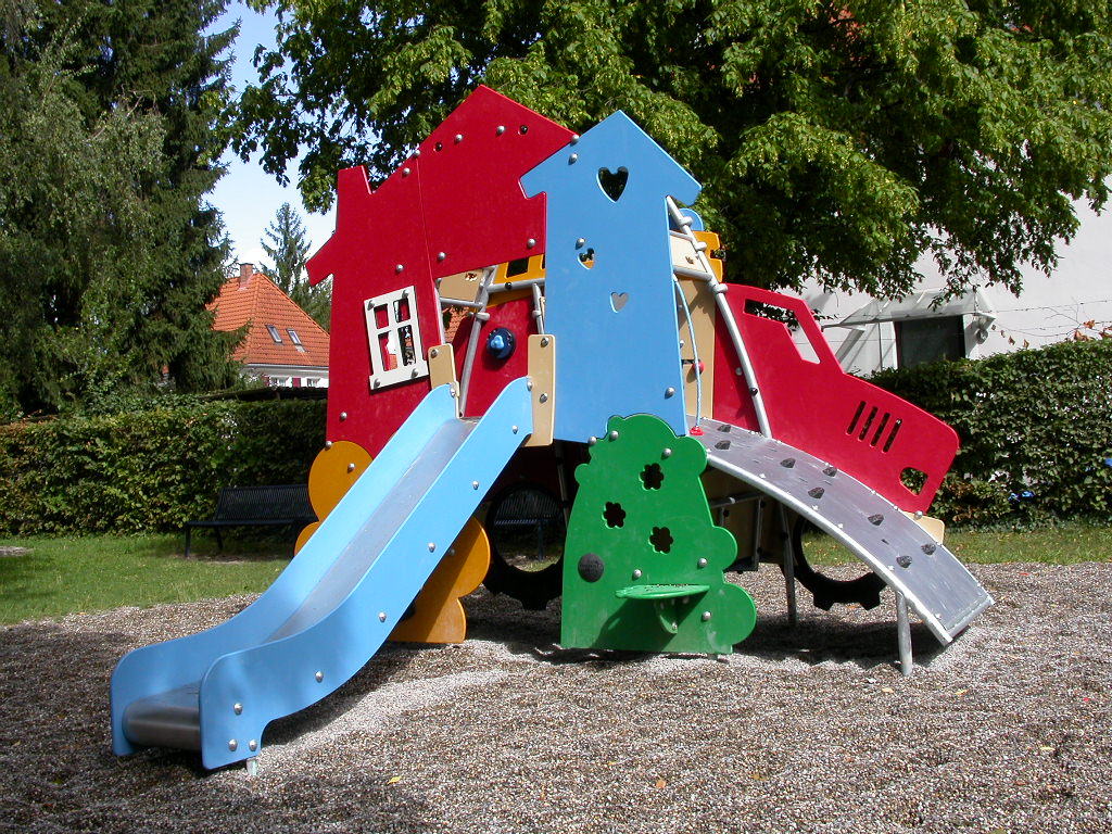 Alter: 3 – 12 JahrenAusstattung: Sitzbank, Sonne, HalbschattenSpielgeräte: Kleinkinder Kombianlage mit Rutsche