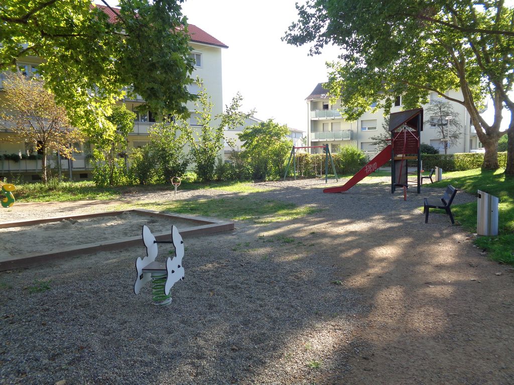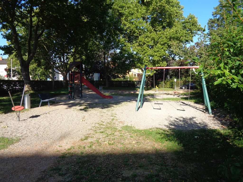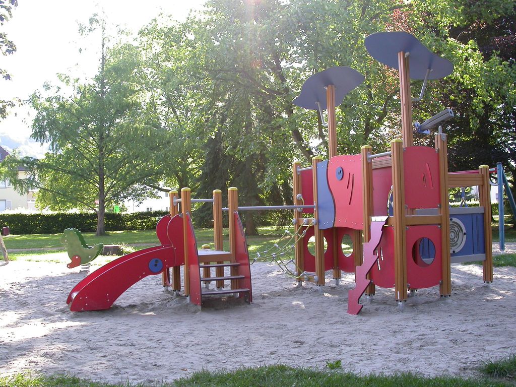 Alter: 3 – 14 JahrenAusstattung: Sitzbänke, Picknick -Sitzgruppe, Sitzarena Halbschatten, SonneSpielgeräte: Sandkasten, Wipptiere, Dialogschaukel, Hangrutsche, Murmelspielfeld, Kombinationsanlage "Feuerwehr"