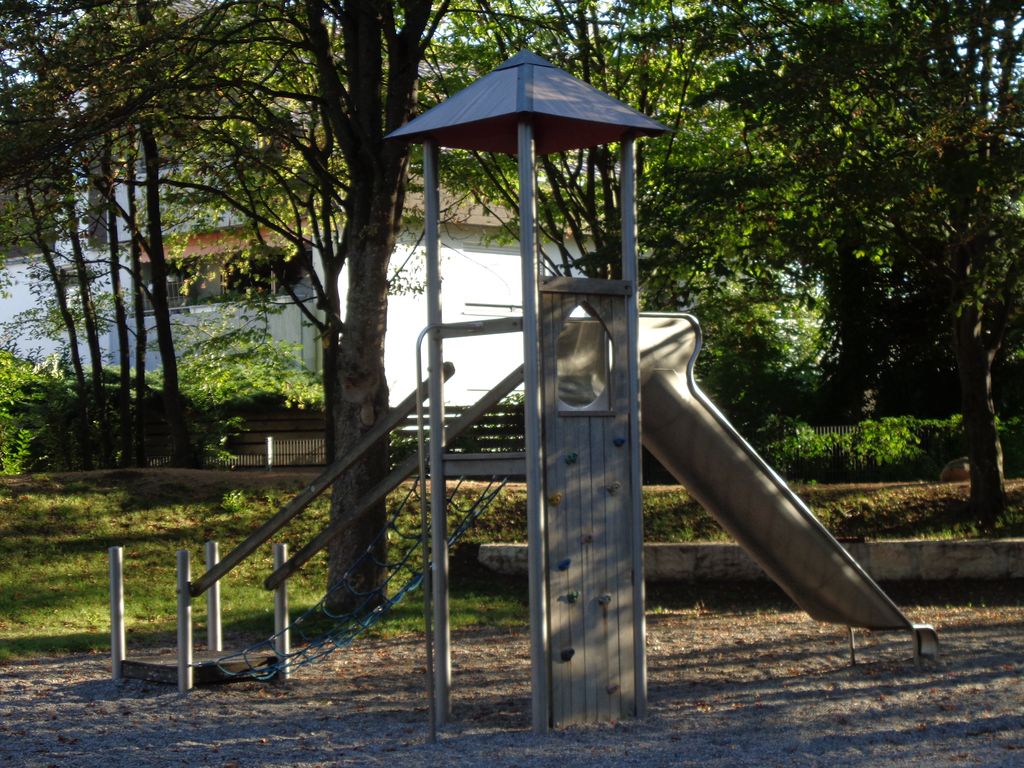 Alter: 6 – 14 JahrenAusstattung: Sitzbänke, Freifläche zum spielen, SonneSpielgeräte: Seilbahn, Karussell, Kombination Spielanlage mit Rutsche