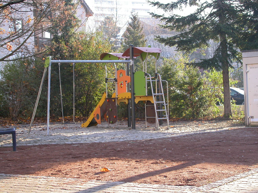 Alter: 3 – 12 JahrenAusstattung: Sitzbänke, Sonne, HalbschattenSpielgeräte: Sandkasten, Wipptiere, Kleinkinderschaukel, Kleinkinder –Kombinationsanlage mit Rutsche