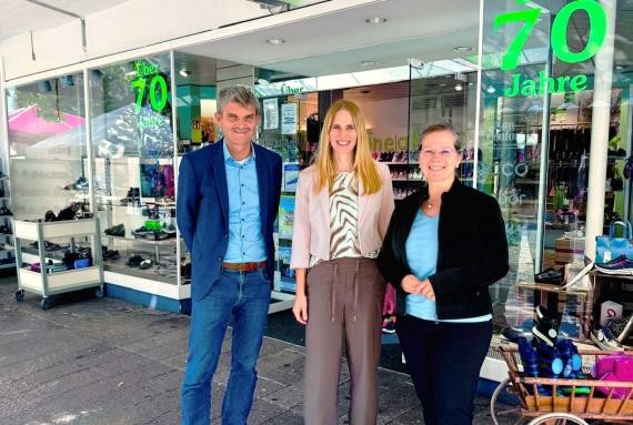 Unternehmensbesuche: Oberbürgermeisterin Diana Stöcker ist bei Intersport Gemo und dem Schuhhaus Wachenheim zu Gast