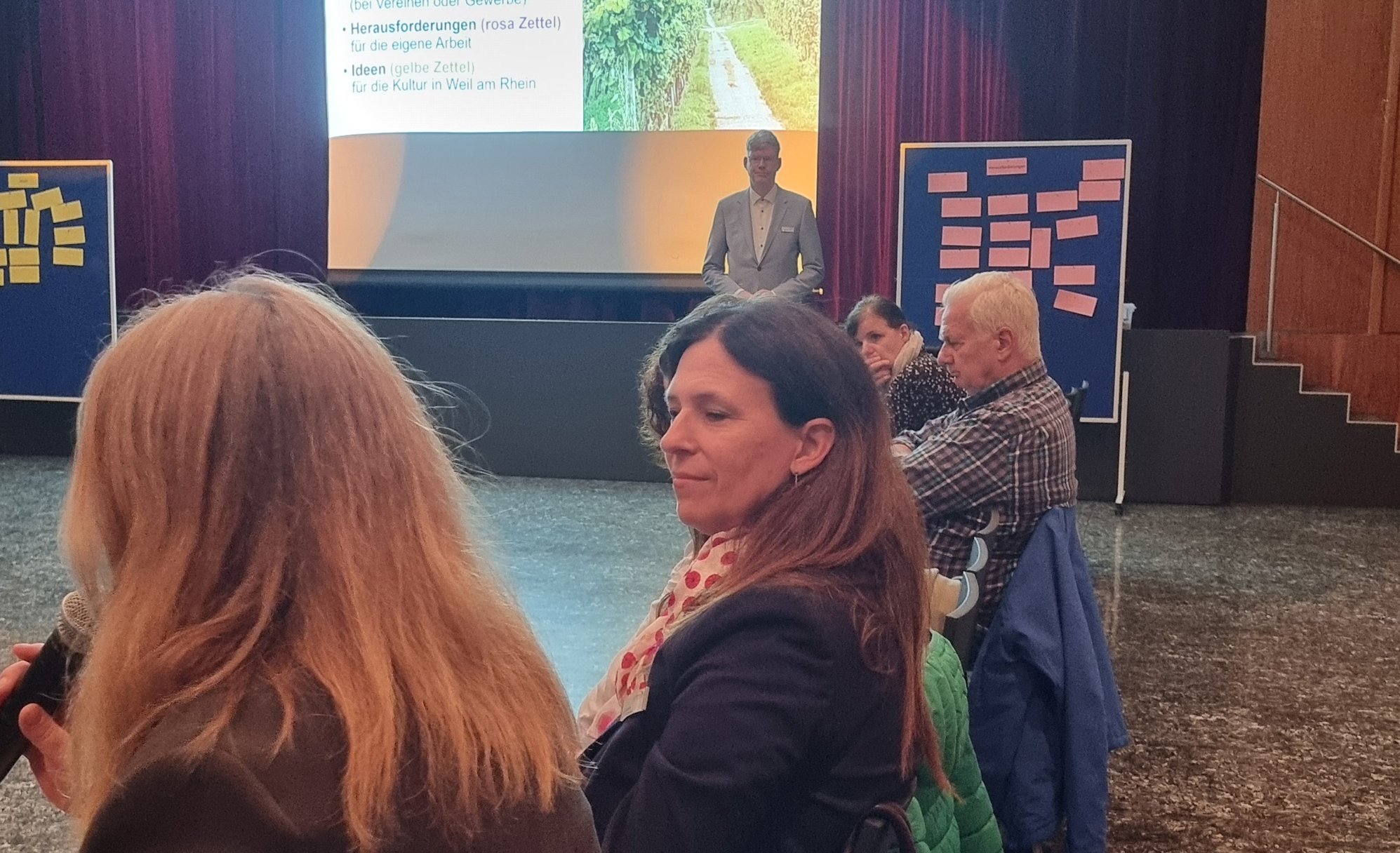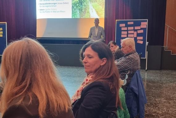 Rund 30 Menschen nahmen an dem Treffen teil, das sich in drei Abschnitte gliederte. Zunächst stellte Spörrer das Kulturamt und seine vier Abteilungen mit ihrem Angebot sowie die große Bandbreite der eigenen Veranstaltungen des Amts vor. Im Anschluss daran gab es eine Kennenlern-Runde aller Anwesenden und im dritten Teil wurde über Ideen für die Kultur in Weil am Rhein und Herausforderungen für die eigene Arbeit gesprochen.