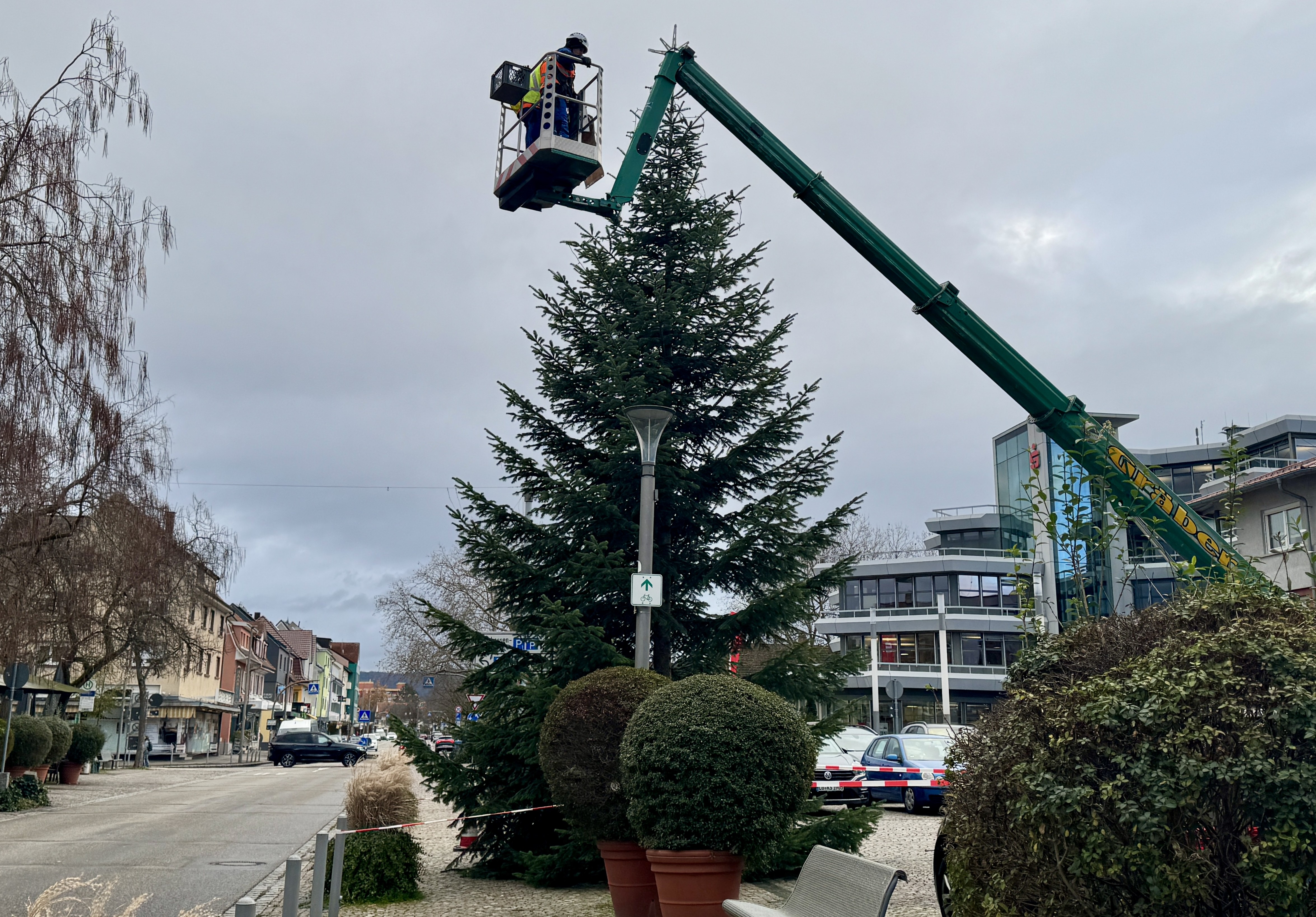 Sparkasse Markgräflerland spendet beide Weihnachtsbäume für Linden- und Sparkassenplatz