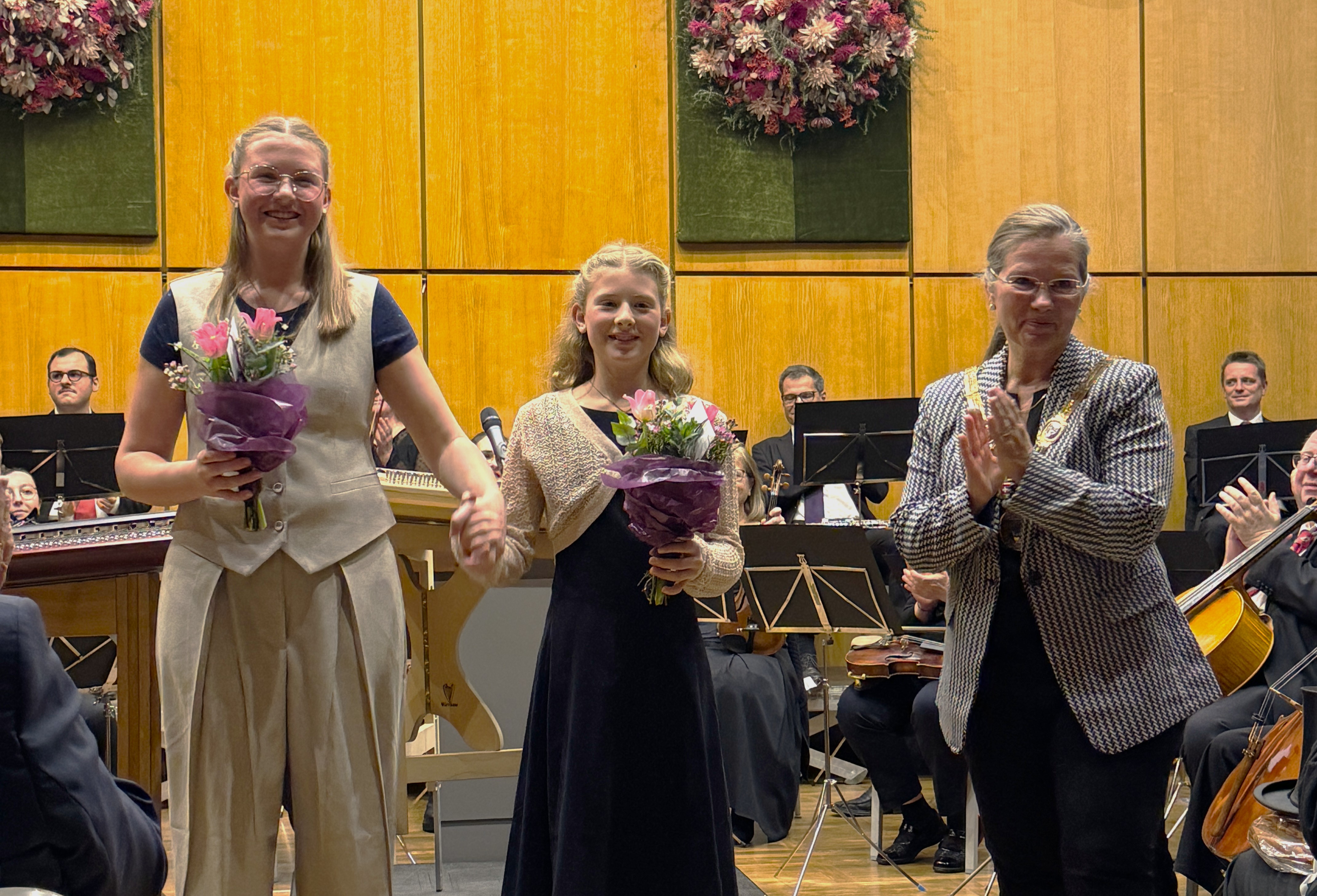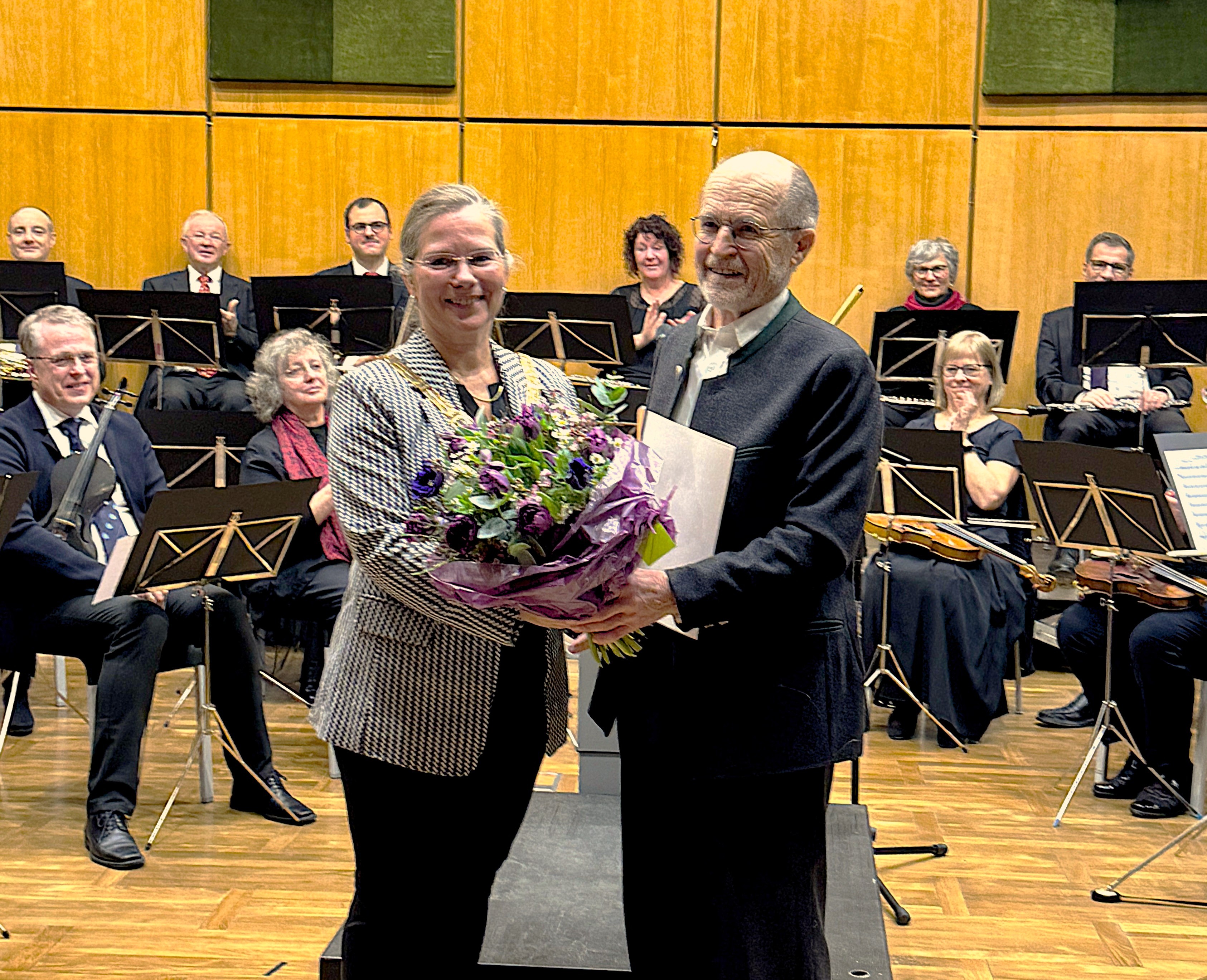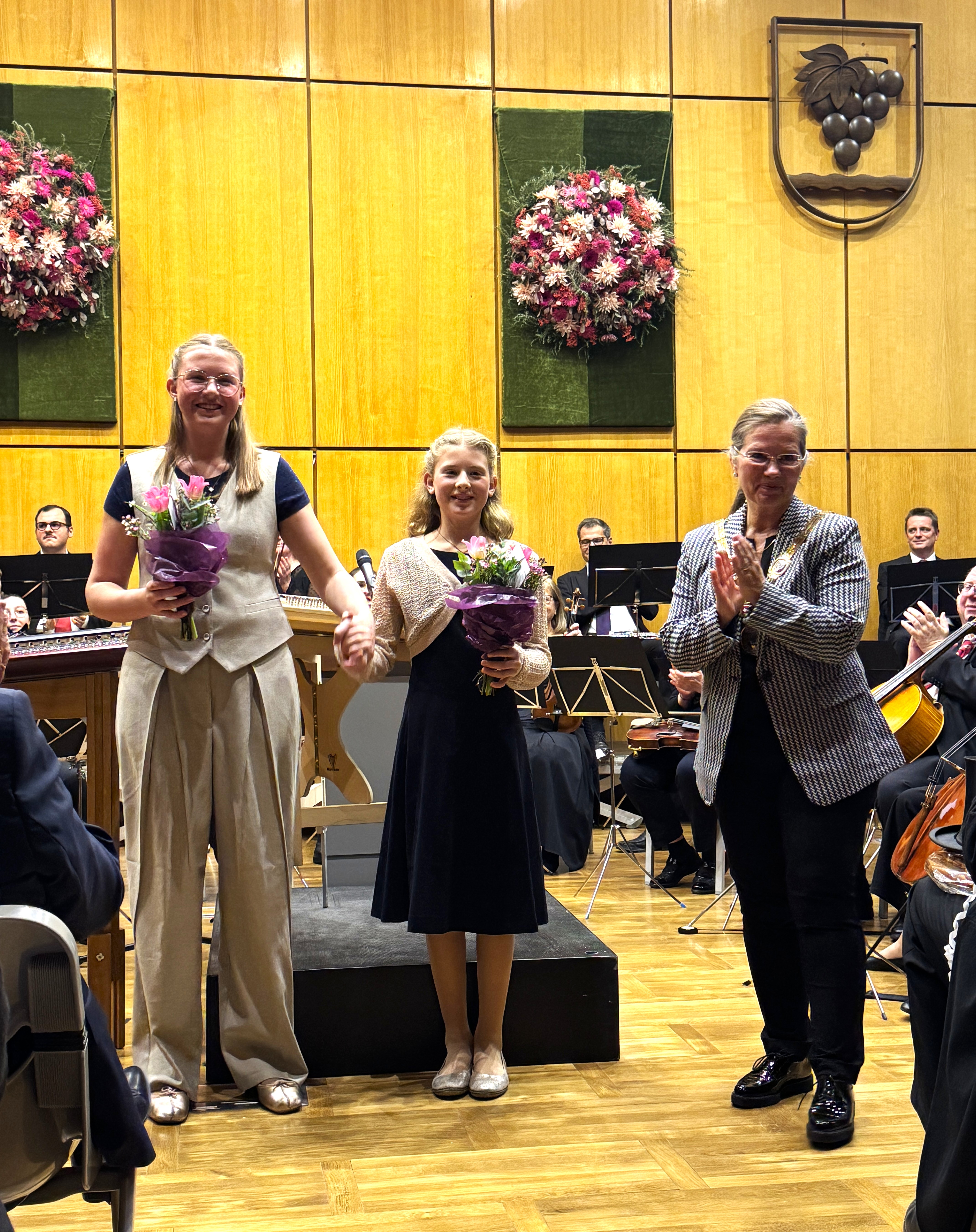 Der Große Sitzungssaal war mit 500 Gästen wieder bis auf den letzten Platz gefüllt und festlich dekoriert. Den würdigen Rahmen dieses sehr bedeutsamen Ereignisses in der 3-Länder-Stadt bildeten zudem die ebenso bewährte wie spielfreudige Orchestergesellschaft Weil am Rhein unter der Leitung von Franck Nilly sowie die Geschwister Julia und Anna Dietsche. Die beiden Musikschülerinnen verzückten mit dem Hackbrett das Publikum musikalisch. Einmal mehr ein echtes Erlebnis. Der Applaus war groß.