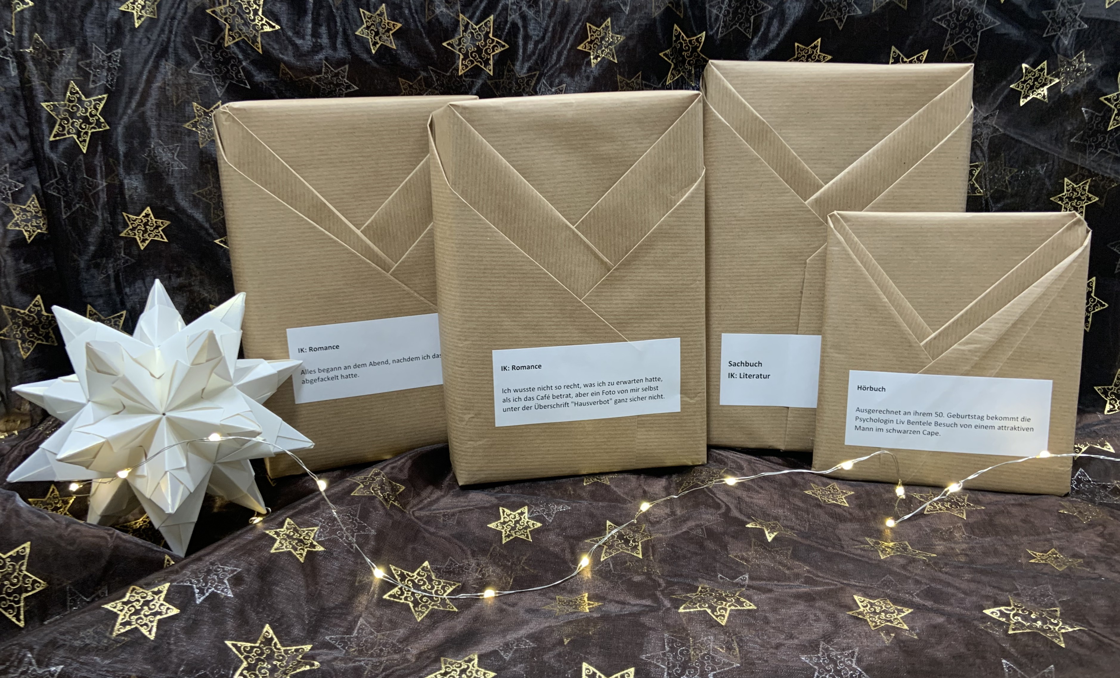 Im Erdgeschoss werden auf der Theke viele neutral verpackte Bücher und auch einige Hörbücher präsentiert. Das Besondere daran: Erst beim Auspacken zu Hause erfährt man, welches Buch oder Hörbuch ausgeliehen wurde.