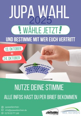 Auch die Standpunkte der jungen Generation sollen in Entscheidungen für die Zukunft der Stadt einfließen. Deshalb gibt es seit 1993 in Weil am Rhein das Jugendparlament (JuPa), das zu bestimmten Themen einbezogen wird. Es besteht aus 18 Sitzen und ist auf zwei Jahre gewählt. Kandidat oder Kandidatin für das JuPa können alle Jugendlichen ab 14 Jahren werden, die in Weil am Rhein wohnen oder eine Schule in der Stadt besuchen. Das aktive und passive Wahlrecht besitzen die Jugendlichen aller Nationalitäten, die am Wahltag 14 aber höchstens 20 Jahre alt sind und zum Zeitpunkt der Wahl seit mindestens drei Monaten in Weil am Rhein ihren Hauptwohnsitz haben.