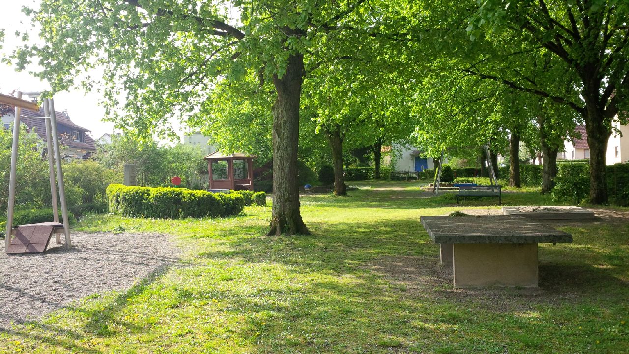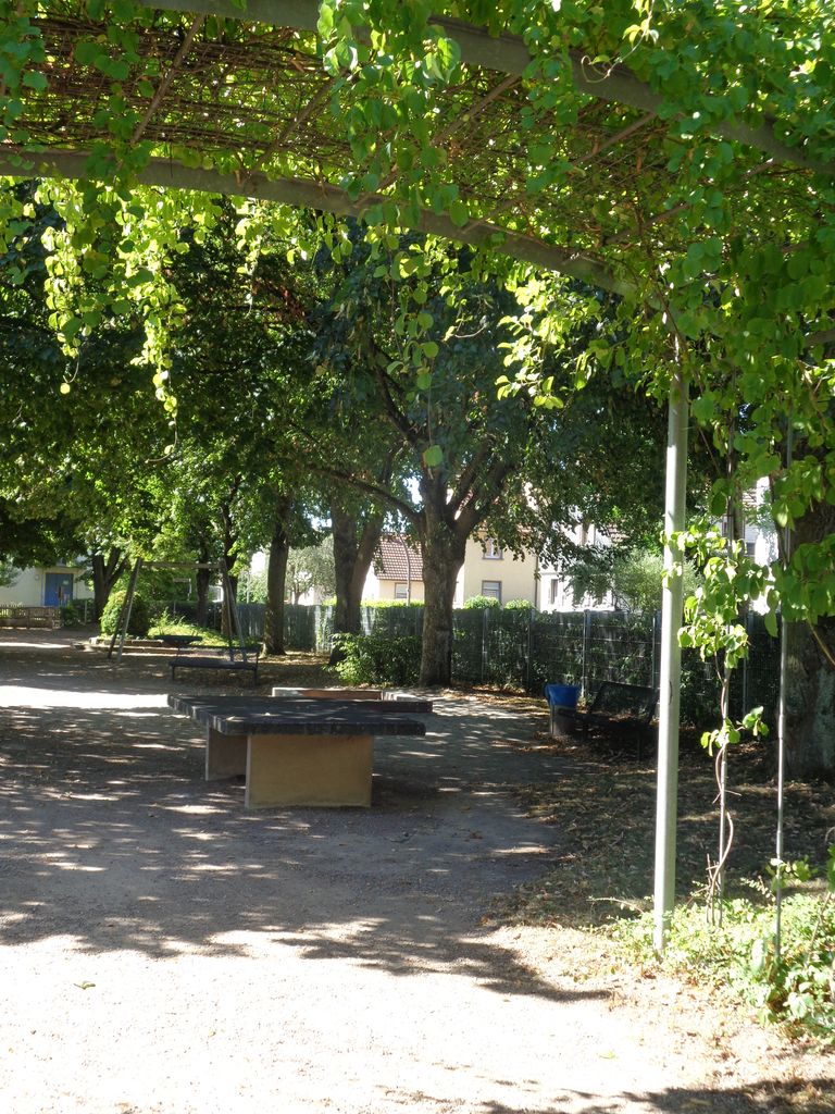 Alter: 3 – 14 JahrenAusstattung: Sitzbänke, Pavillon Halbschatten, SonneSpielgeräte: Sandkasten, Wipptiere, Babyschaukel, Vogelnestschaukel, Seiltanz, Kombination- Spielanlage mit Rutsche, Tischtennisplatten, Korbballanlage