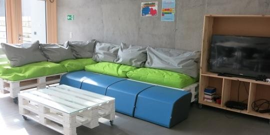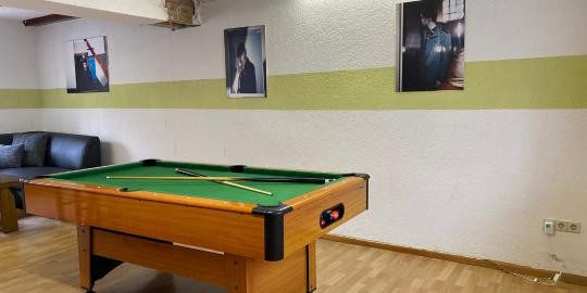 Der Raum bietet eine gemütliche Sofaecke, einen Billiardtisch, ein Dartautomat und diverse Gemeinschaftsspiele.