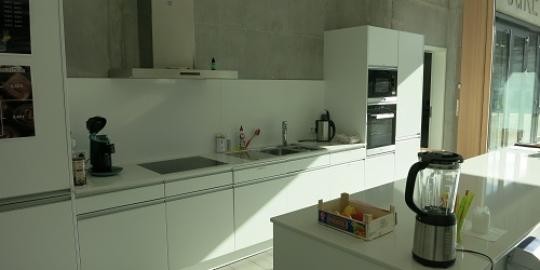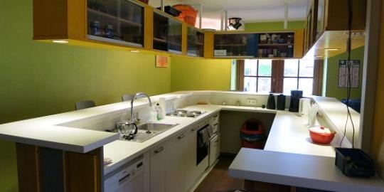 Außerdem gibt es eine Küche und eine kleine Bar, wo gemeinsam gekocht werden kann.