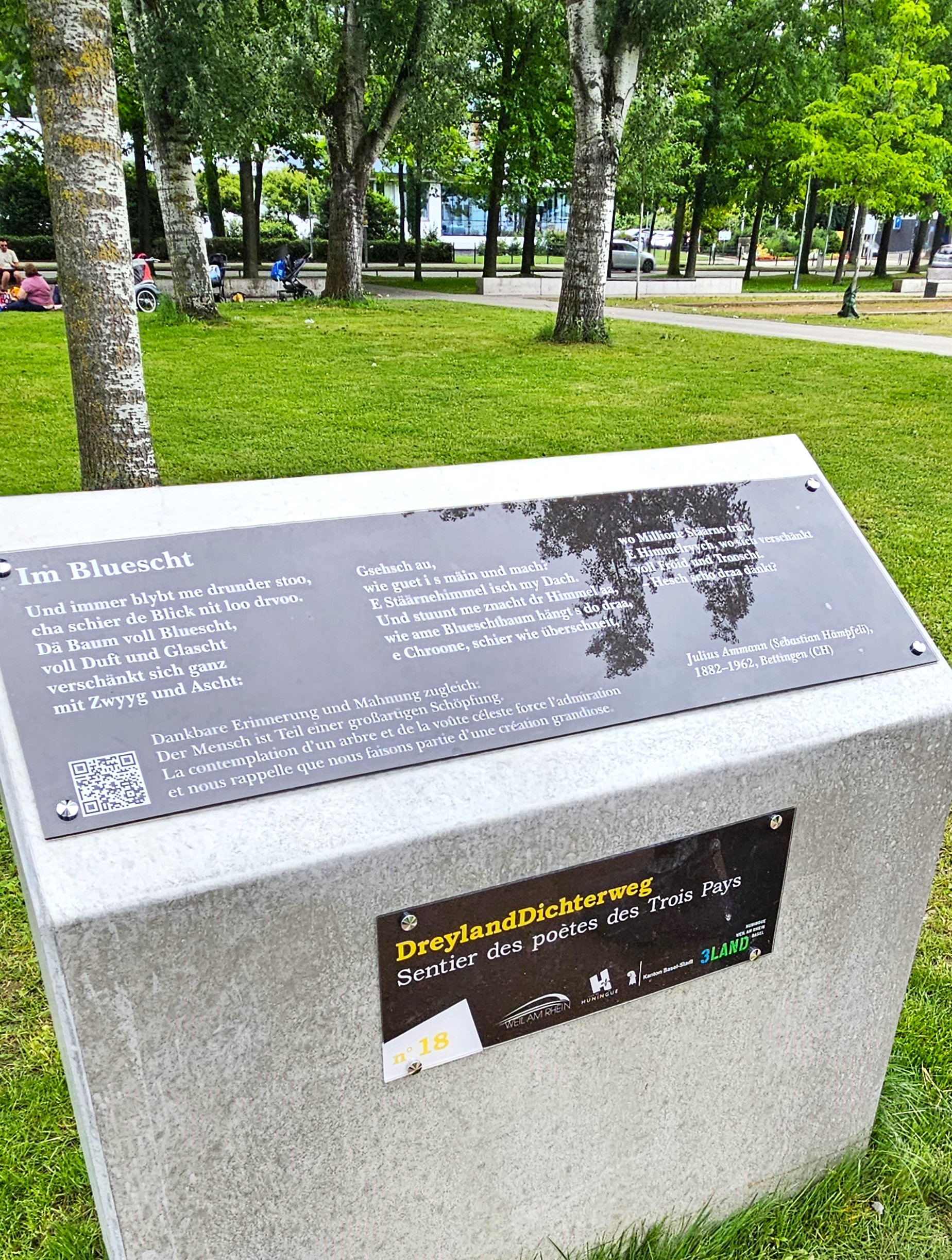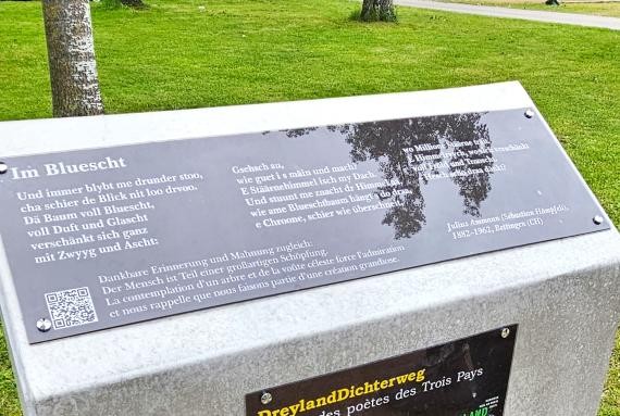 Der DreylandDichterweg steht für das gemeinsame, kulturelle Erbe der Dreiländerregion, für die alemannische Sprache, verdichtet in Poesie, getragen von Geschichte und Gegenwart. Er besteht aus 30 Gedichten – elf aus Basel, neun aus dem Elsass und zehn aus Baden, welche einen Bogen von Johann Peter Hebel (1760 - 1826) bis in die Gegenwart spannen.
