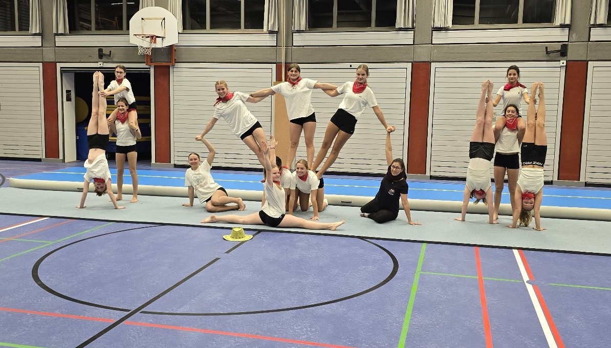 Bei einer kleinen Feierstunde vor Ort, bei der die Turnerinnen der Wettkampfgruppe ihr Können präsentierten, wurde der neue dunkelblaue Belag eingeweiht. Mit von der Partie waren Linda Bürgin und Catherina Winterle aus der Vorstandsriege der TSG Ötlingen, Thomas Harms als Vertreter des Gemeinderats, Mitarbeitende aus dem Amt für Gebäudemanagement und Umweltschutz und der Abteilung Schulen & Sport, sowie Ötlingens Ortvorsteher Johannes Maier und Bürgermeister Lorenz Wehrle.